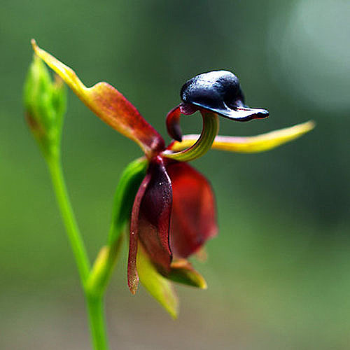 澳大利亚特产地生兰,卡莉娜兰(Caleana) 其花朵侧面像极了一只只凌空飞起的小鸭子,非常生动,故有飞鸭兰(Flying Duck Orchid)之称。 兰科,飞鸭兰属,学名Caleana major (卡莉娜兰)。中文名系由英文名“flying duck orchid”译出。 澳洲大陆在六亿年前自美洲大陆脱离以来, 这儿的生态体系便逐渐的独树一帜, 谈到澳洲,在许多人的心中想到的是无尾熊、鸭嘴兽,然而在爱兰者的心中,想到的是澳洲特有的兰花。澳洲不只有像鸭子的鸭嘴兽,更有像鸭子的兰花, 令人不禁赞叹造物者的神奇。 |